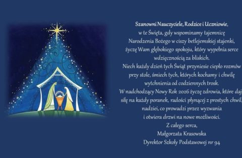 Informujemy, iż w dniach 2.01 (piątek) i 5.01 (poniedziałek) 2026r. sekretariat szkoły będzie nieczynny.